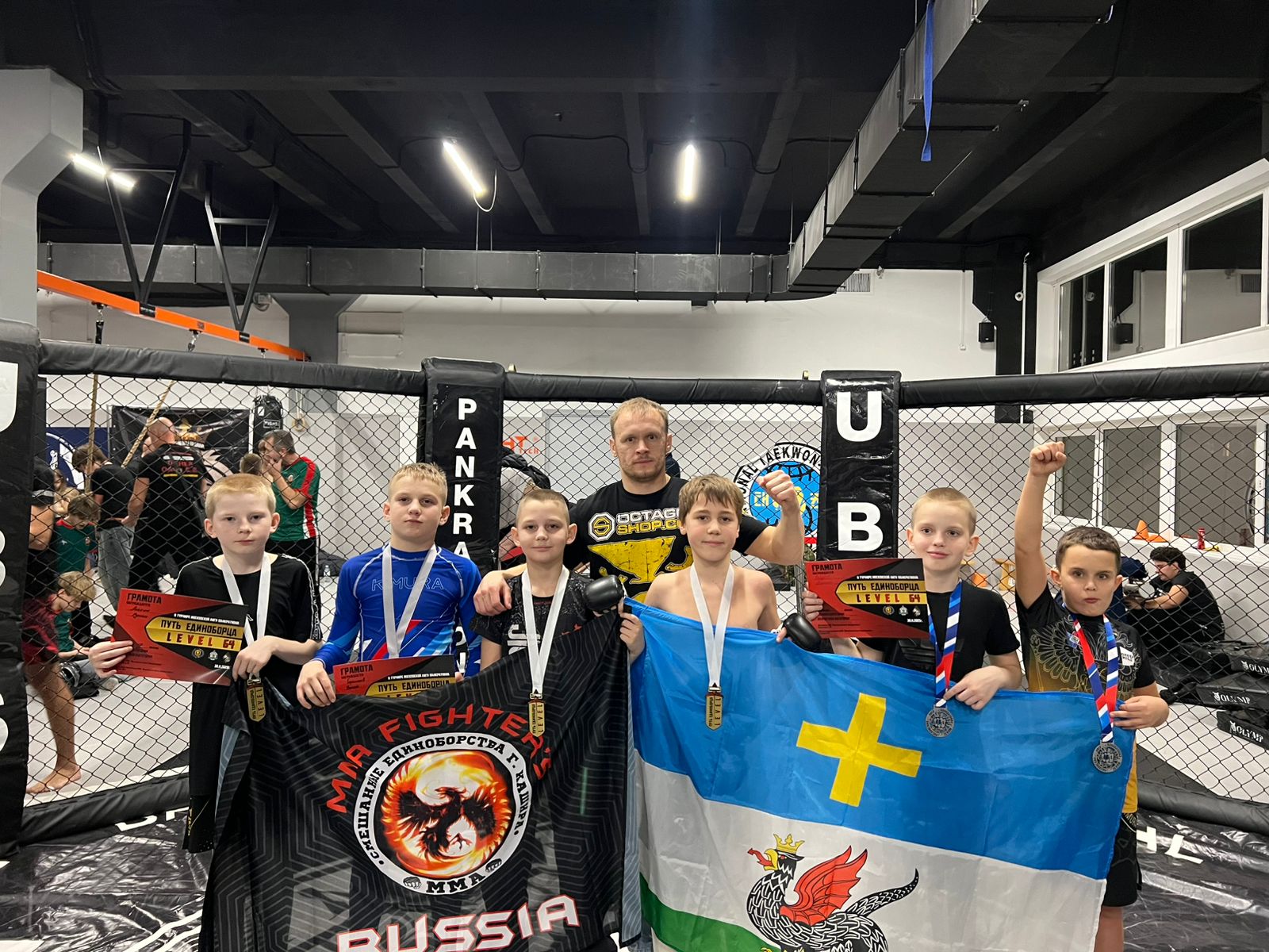 Спортсмены секции ММА Кашира, которые занимаются на базе ДС «Юбилейный» МАУ «Спортклуб «Кашира» имени Н.П. Елисеева», под руководством тренера Пеликанова А.В.